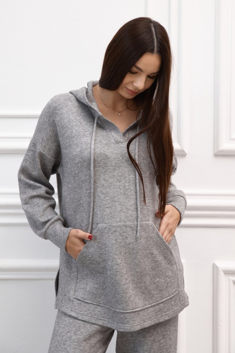 Ангоровий костюм — ідеальний вибір для тих, хто цінує комфорт і стиль у будь-яку пору року. Комплект виконаний із м’якої, приємної до тіла ангорової тканини, що забезпечує тепло й затишок без відчуття важкості. Верх — кофтина з капюшоном, м’якими манжетами та зручними кишенями, які додають практичності й невимушеного шарму. Штани — прямого крою, на еластичному поясі, комфортно сідають і не сковують рухів. Завдяки продуманому дизайну костюм чудово підходить як для прогулянок, так і для відпочинку вдома чи подорожей. Стриманий силует і приємна текстура ангори створюють відчуття розкоші навіть у повсякденному образі. Костюм легко поєднується зі спортивним або casual взуттям, а також верхнім одягом у стилі smart-casual.