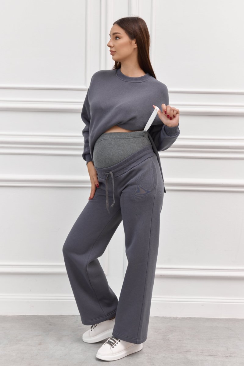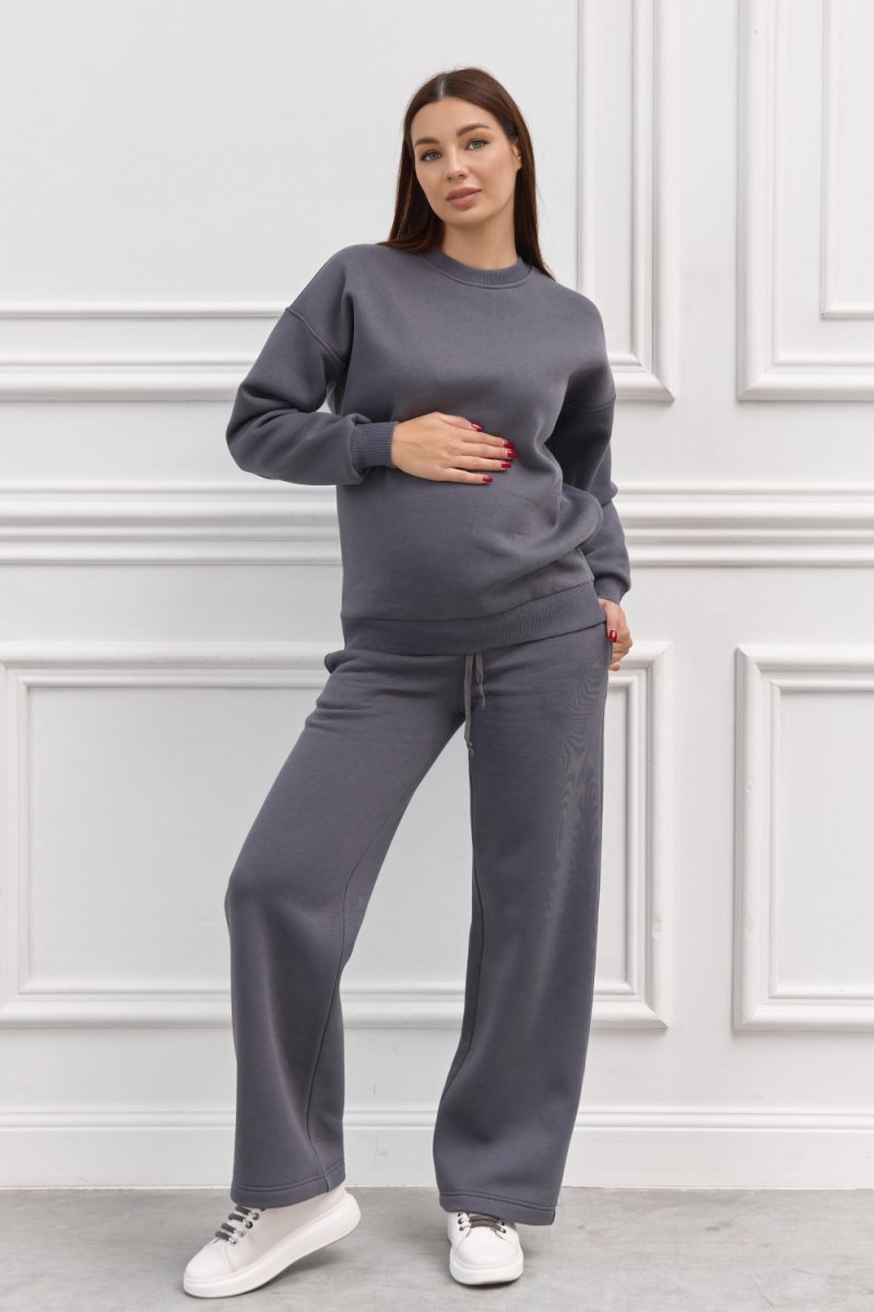 Теплий спортивний костюм у графітовому кольорі — це поєднання функціональності та стилю для майбутніх і годуючих мам. М’який трикотаж на флісі дарує комфорт і зберігає тепло, не обмежуючи рухів. Зручний вільний фасон підлаштовується під фігуру під час вагітності, а також залишається практичним після пологів, даруючи зручність при годуванні дитини. Сучасний графітовий відтінок додає впевненості й стриманої елегантності.
