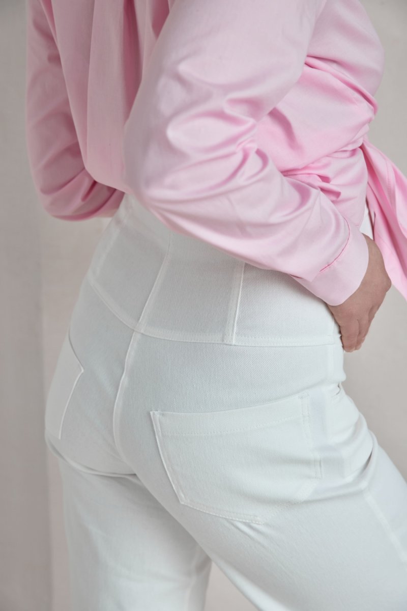 Молочні брюки з джинс-котону стануть незамінними у вашому гардеробі.