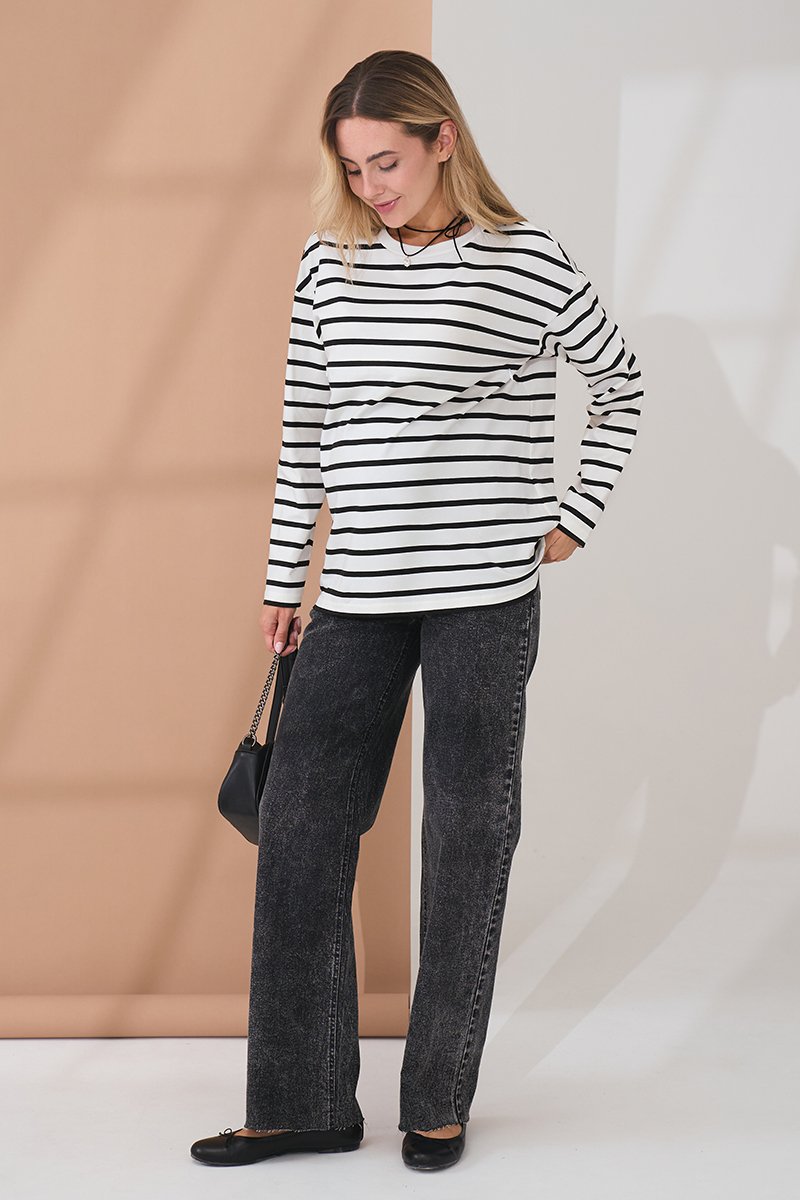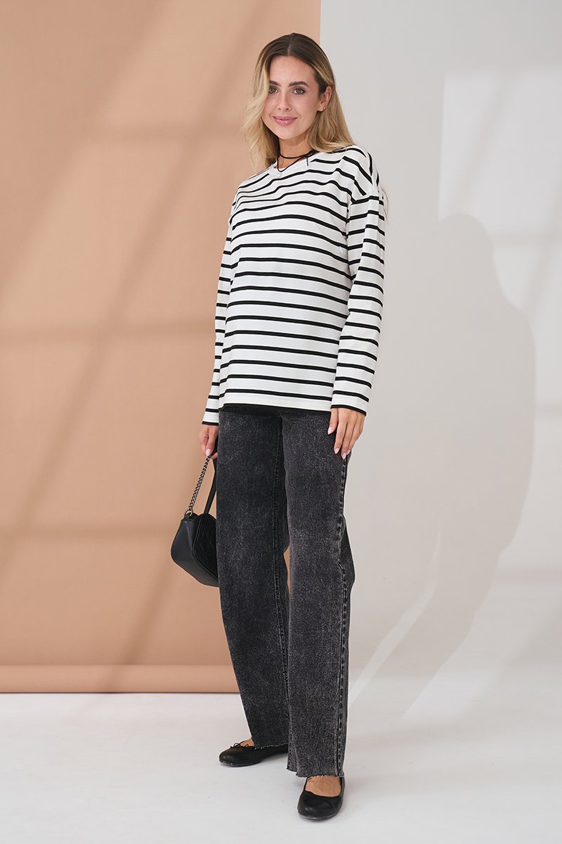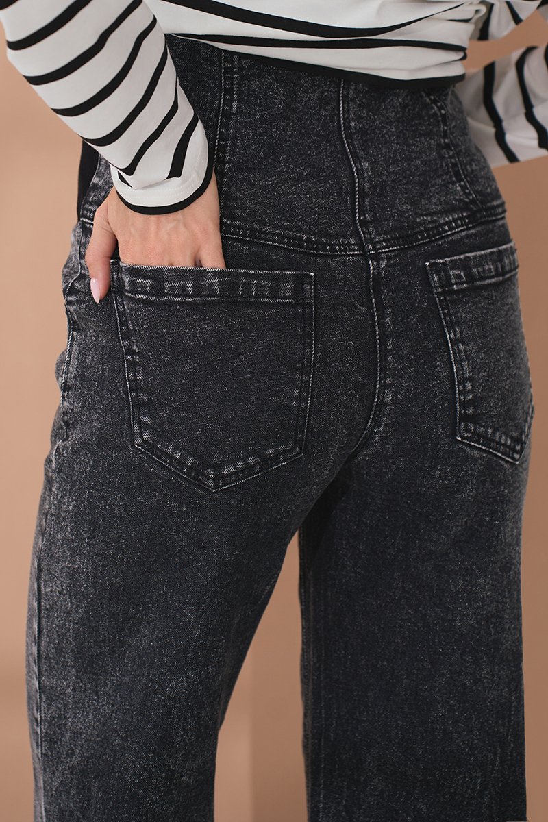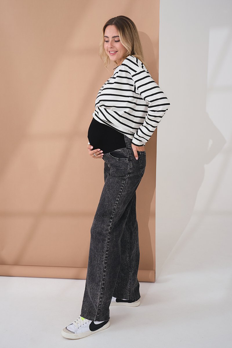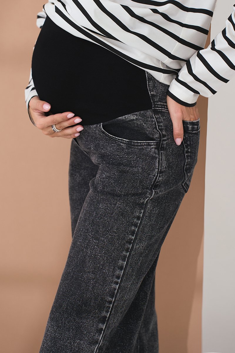 Широкі джинси для вагітних із високою спинкою та відкритим зрізом.