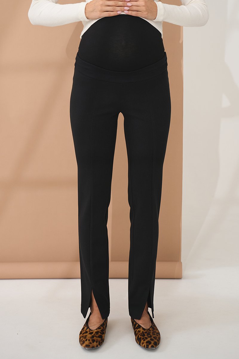 Стильні та теплі штани-лосини для вагітних з розрізом.
