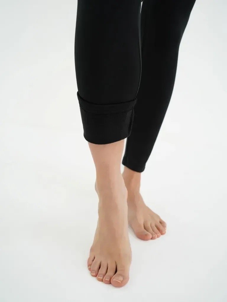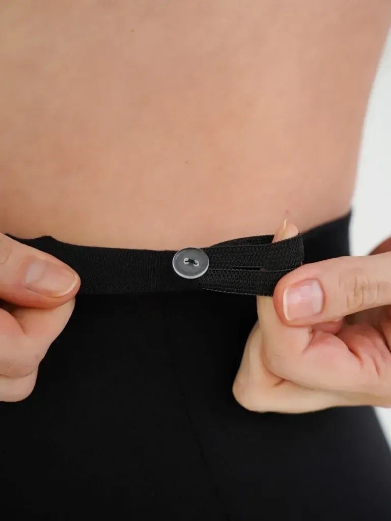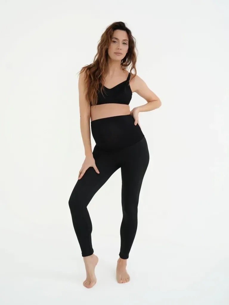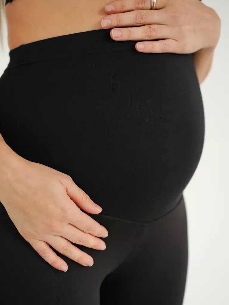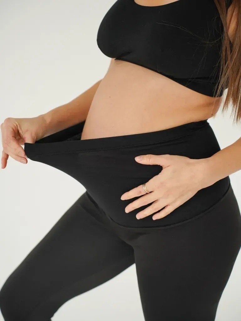 • широкий трикотажний пояс та гумка вздовж нього добре регулюють посадку виробу протягом усієї вагітності та дозволяють носити легінси після народження дитини.