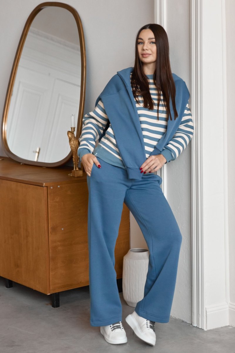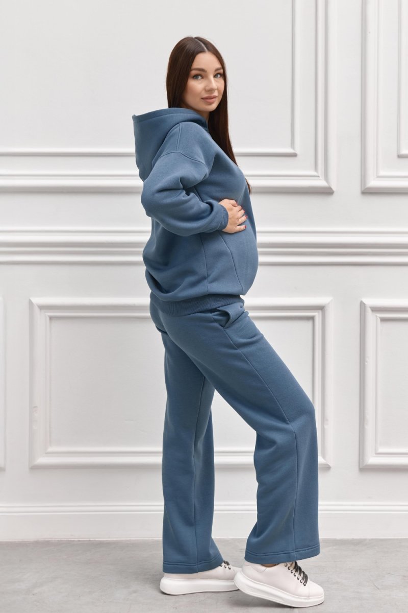 Незамінний темно-блакитний костюм на флісі від Dianora створений для максимального комфорту протягом усього періоду материнства. У комплект входить тепле худі з продуманим секретом для швидкого і непомітного годування та функціональні штани. Особлива перевага штанів: після пологів трикотажна вставка легко відрізається, перетворюючи їх на стильні повсякденні штани. М'який флісовий матеріал забезпечує ідеальне збереження тепла в холодну пору року, роблячи цей одяг для вагітних та годуючих найкращою інвестицією у ваш гардероб.