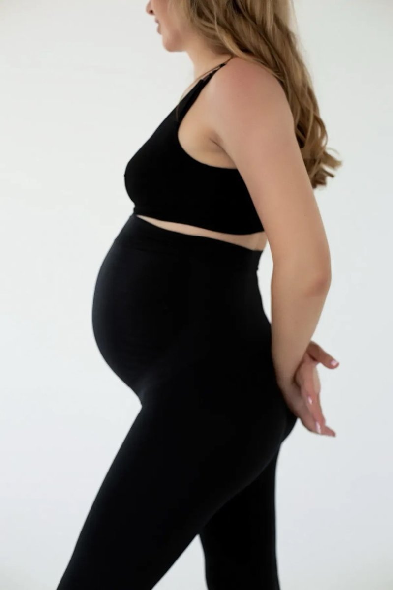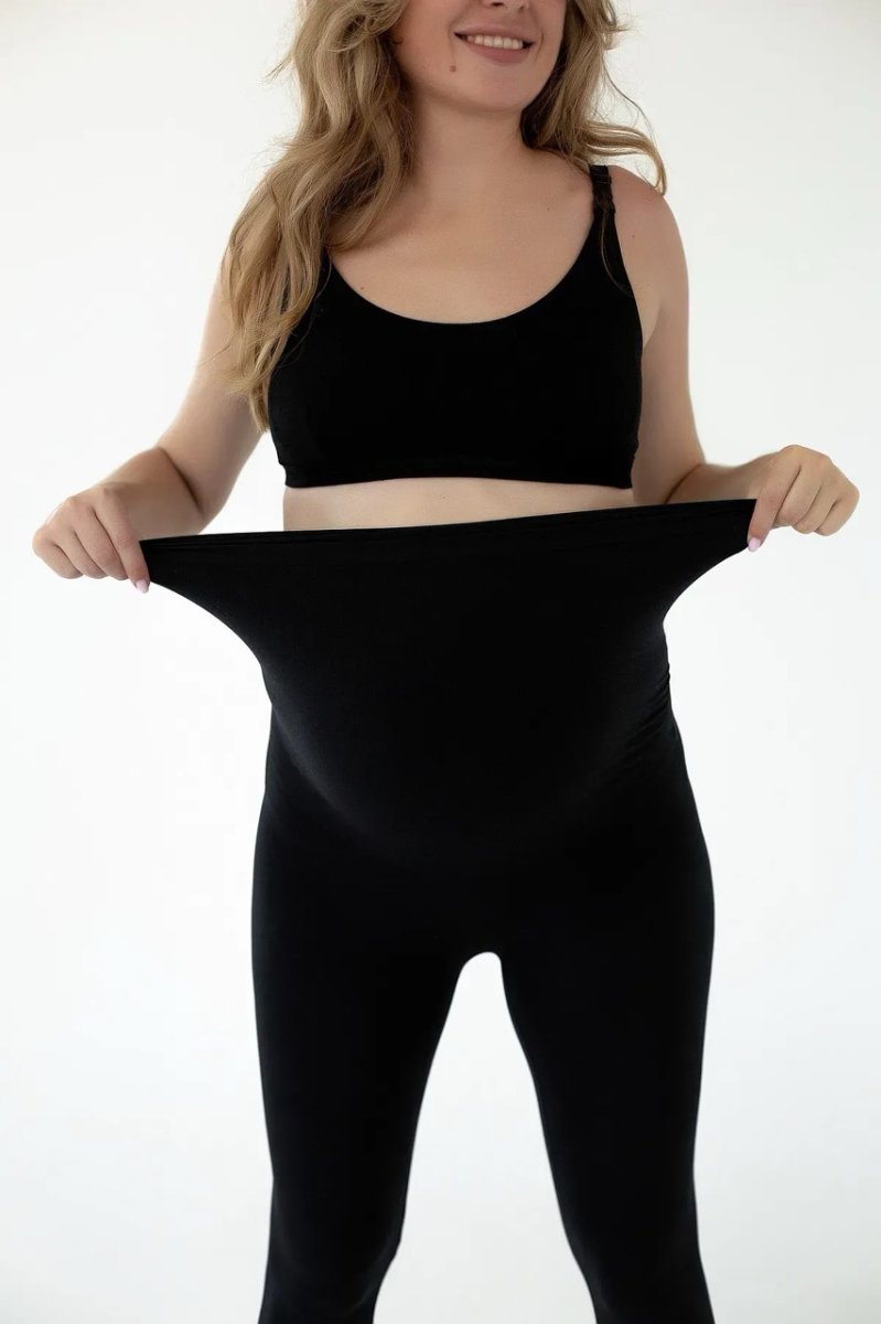 • широкий трикотажний пояс та гумка вздовж нього добре регулюють посадку виробу протягом усієї вагітності.