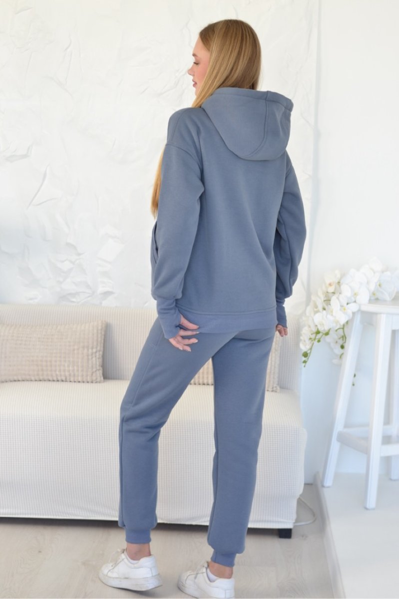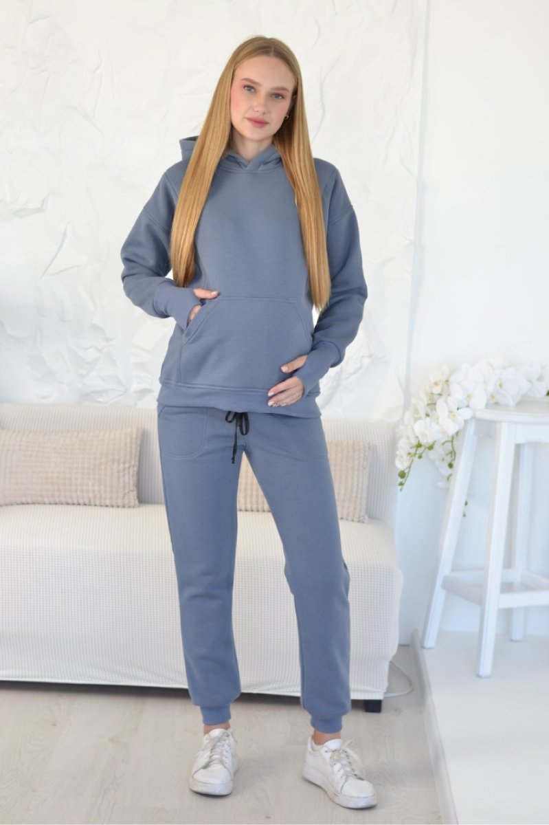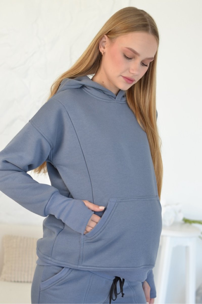 Худи оверсайз имеет свободный крой, замочки для кормления, глубокий капур и широкие манжеты на пальчик для еще большего комфорта.